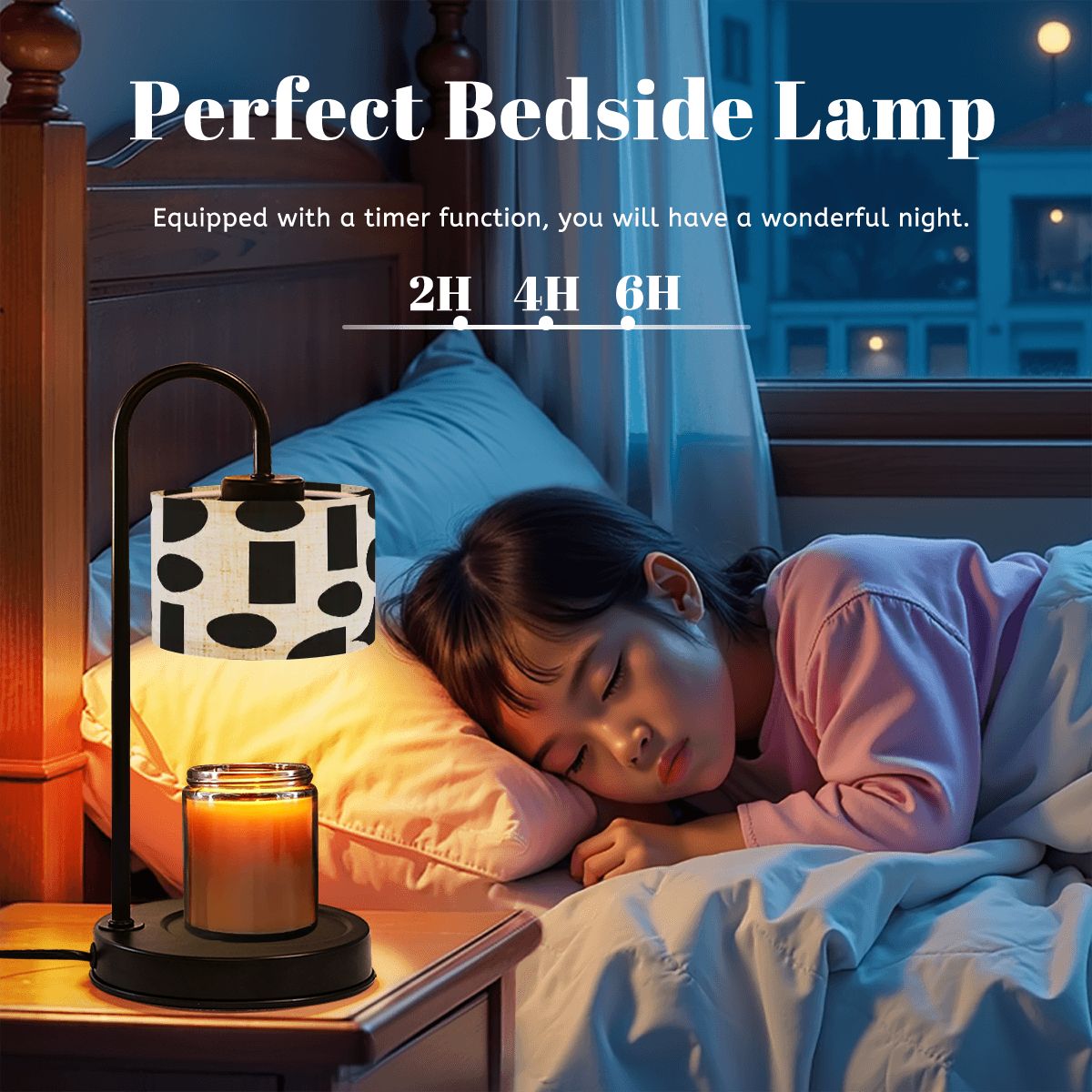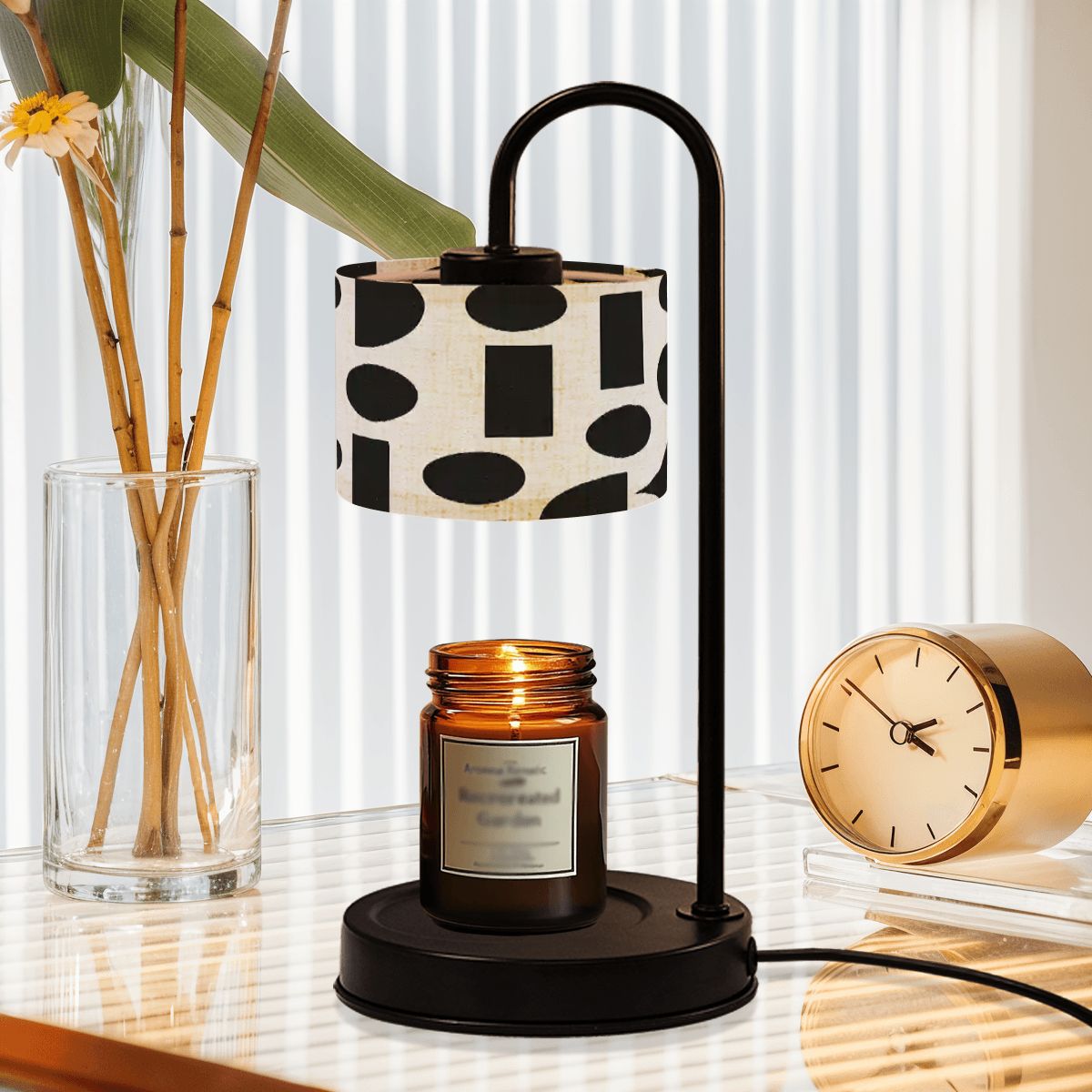 Elevate your home ambiance with this Modern Abstract Candle Warmer Lamp, featuring a bold black-and-cream geometric linen shade paired with a sleek metal frame. Designed to melt candles using heat instead of flame, it adds both safety and style to your relaxation routine.