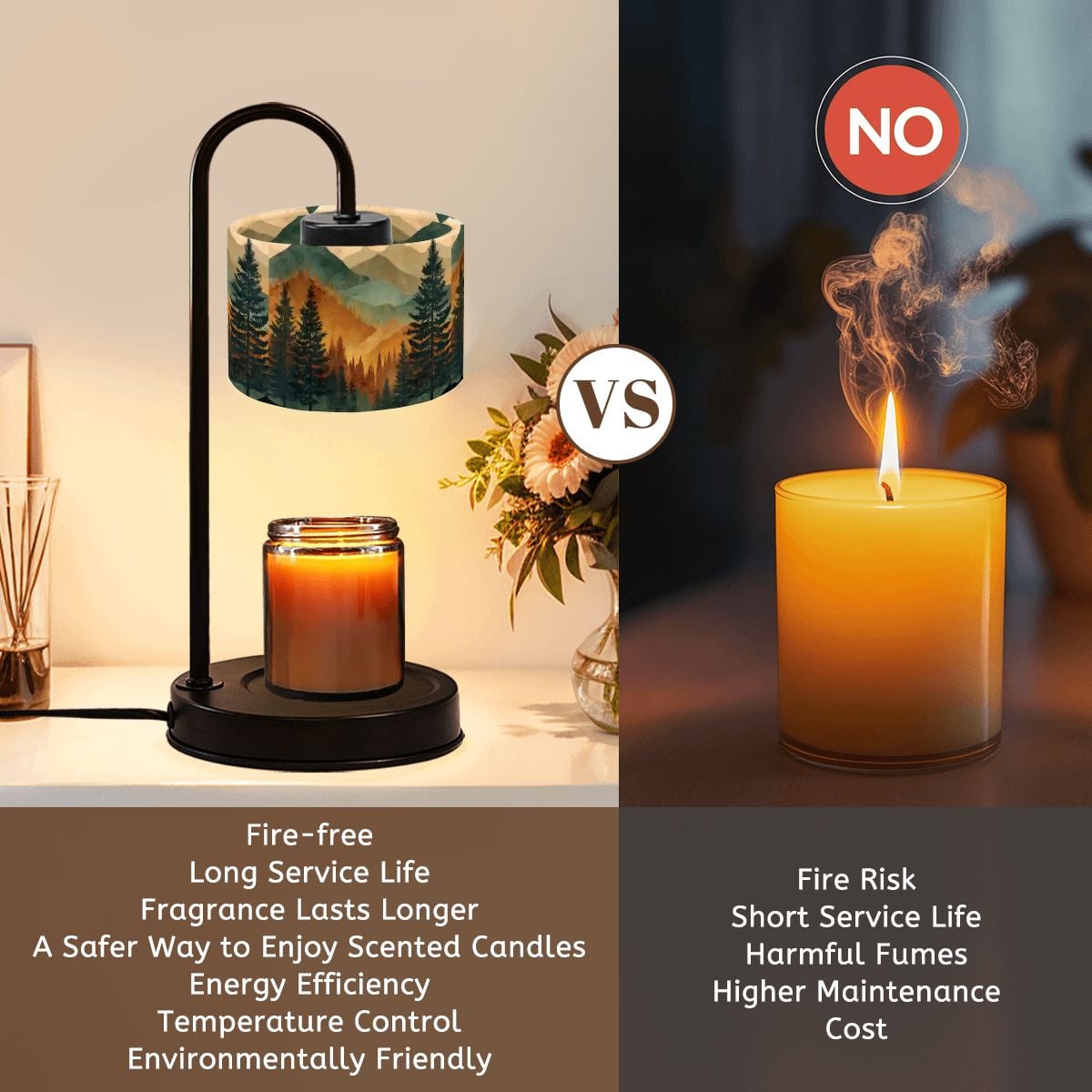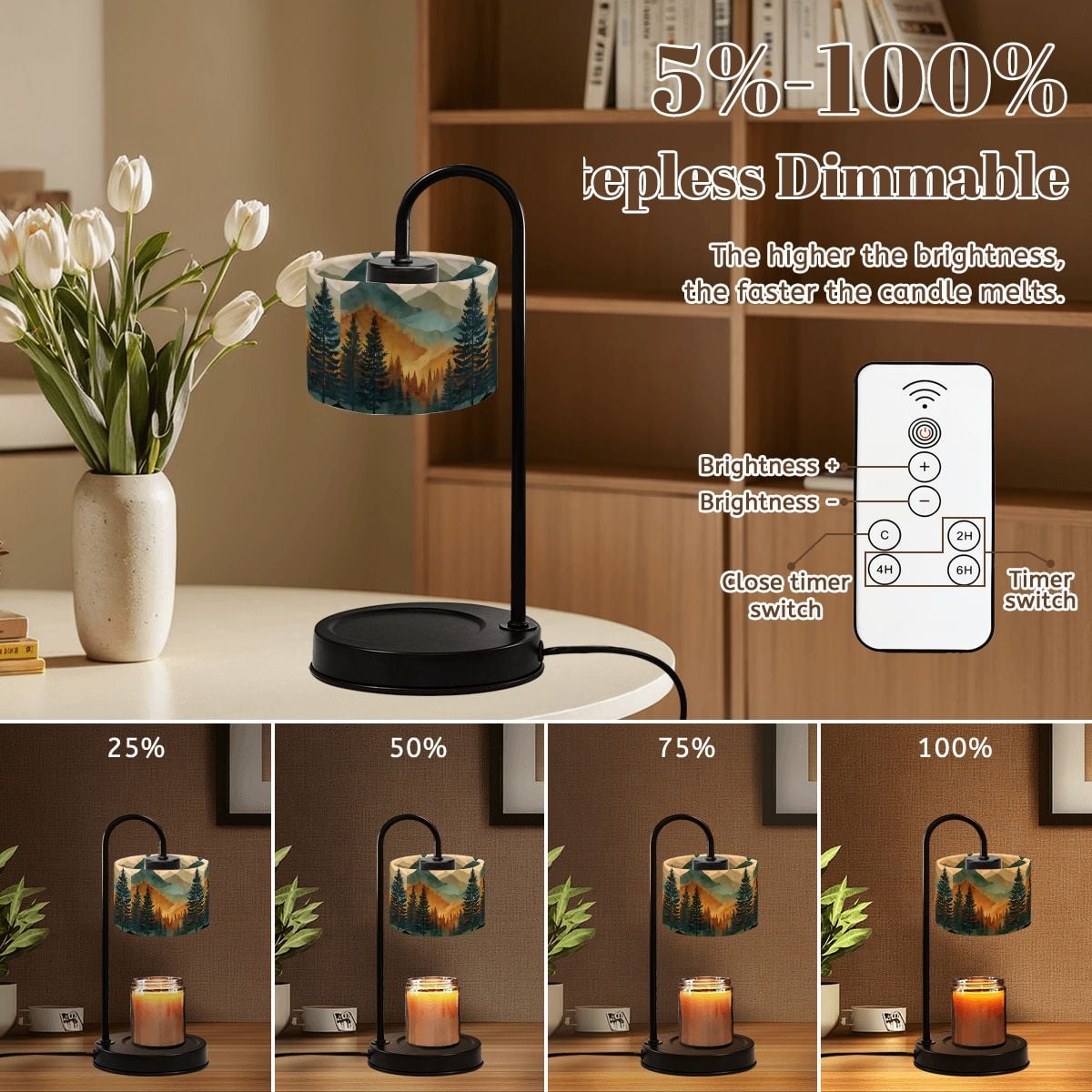 Mountain Forest Candle Warmer Lamp, Woodland Landscape, Rustic Cabin Decor, Flameless Candle Heater