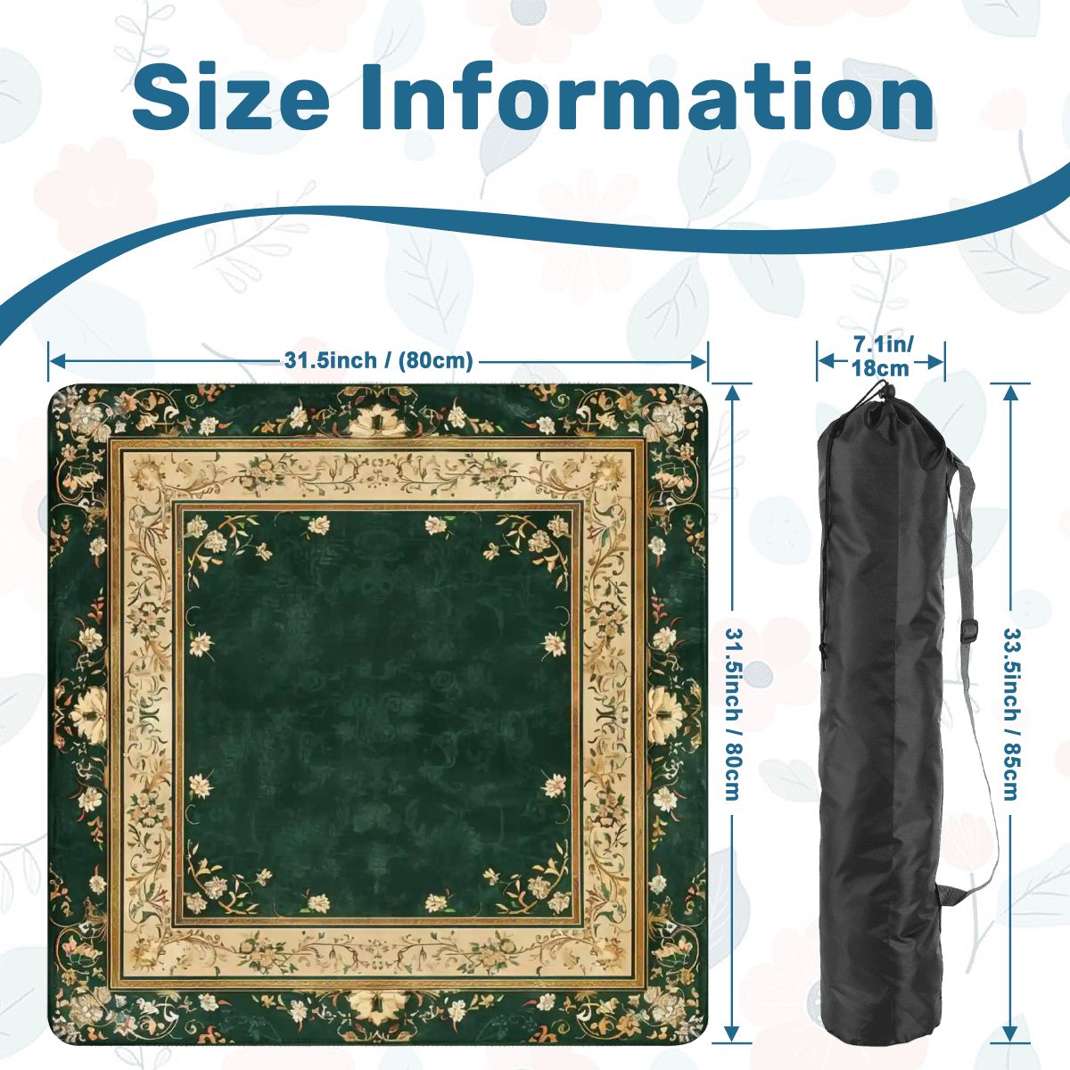 Luxury Floral Mahjong Mat 31.5x31.5 Non-Slip Game Table Mat with Carry Bag | Large Mahjong Playing Mat (Ship Folded)