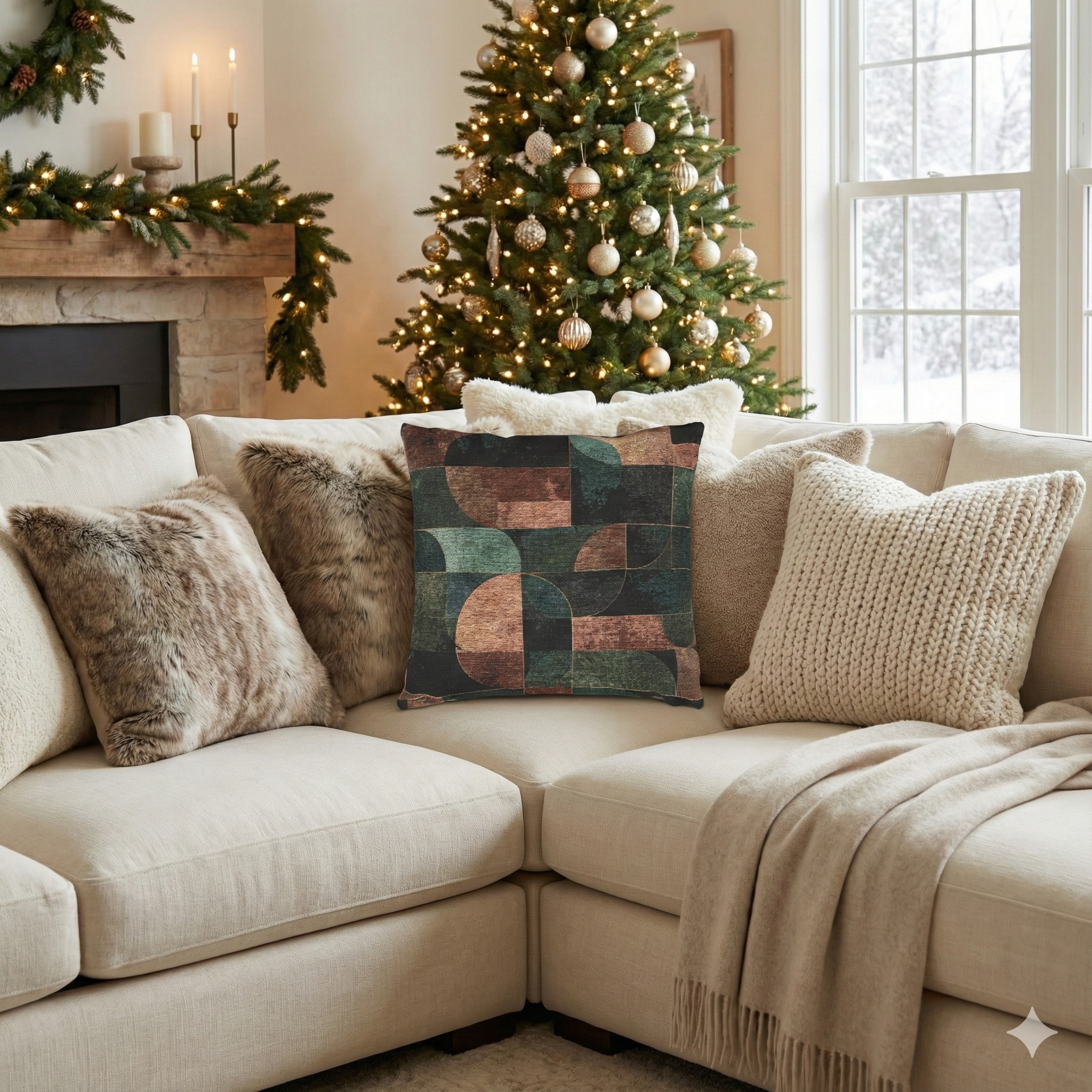 Bring a touch of sophisticated warmth to your living space with this Geometric Earth Tone Woven Pillow. Featuring a bold abstract block pattern in rich, earthy neutrals, this cushion perfectly bridges the gap between Mid-Century Modern structure and relaxed Boho vibes.