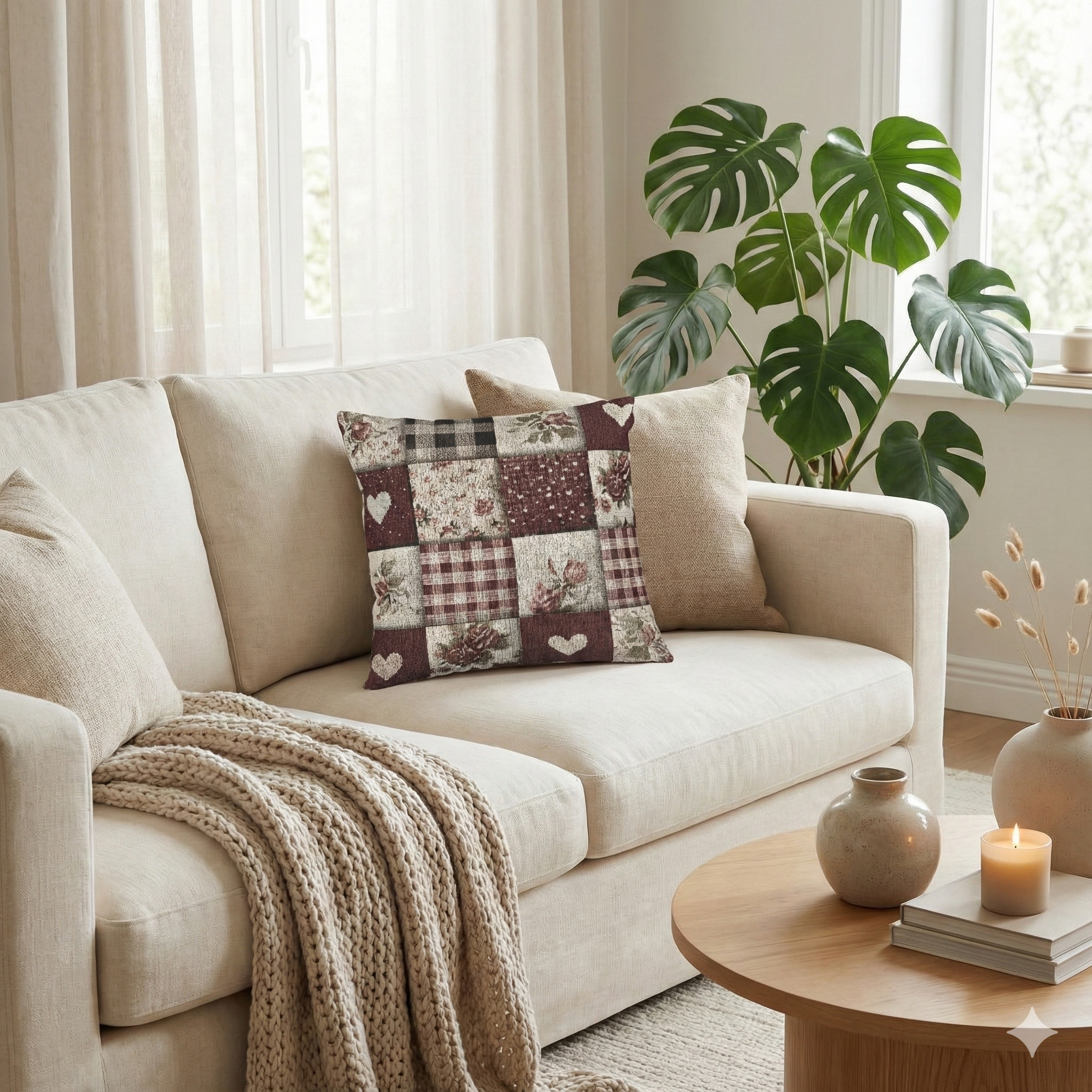 Warmth of handmade patchwork with a modern twist. This woven pillow pairs vintage gingham squares with layered Valentine hearts, all rendered in woven threads that give the surface tactile depth and subtle color shifts. It sits well on a cozy reading chair or layered among sofa cushions, adding a soft, nostalgic note without feeling fussy. The weave catches light differently across the gingham and heart motifs, so the pattern reads as crafted rather than printed. Choose the artwork variant for bold, crisp heart shapes and clean color blocks, or the photo variant if you prefer softer gradations. Finished with a hidden zipper and plush polyester fill, this pillow keeps its shape while inviting you to lean in.