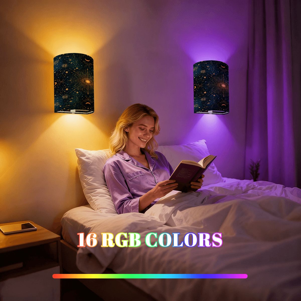 Celestial Stars Wireless Wall Sconces Set of Two, Home Decor Lighting