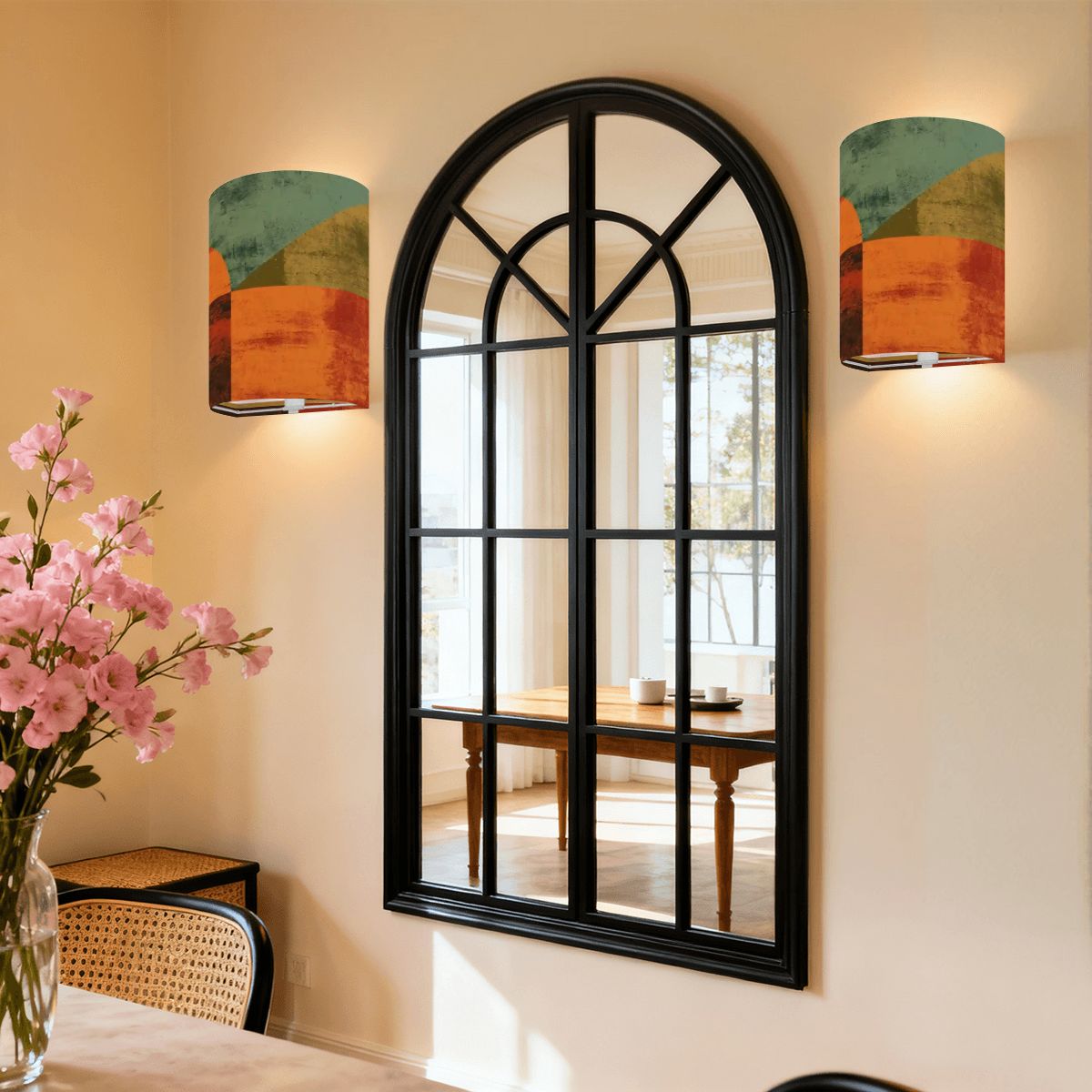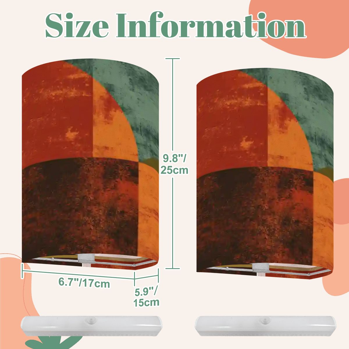 Bring a touch of mid-century modern warmth to your home with this geometric wall sconce lamp, featuring a bold retro design in burnt orange, teal, and rust tones. Designed by me in Florida and printed through my trusted partner in China, this unique linen-shade sconce blends vintage color blocking with contemporary convenience.